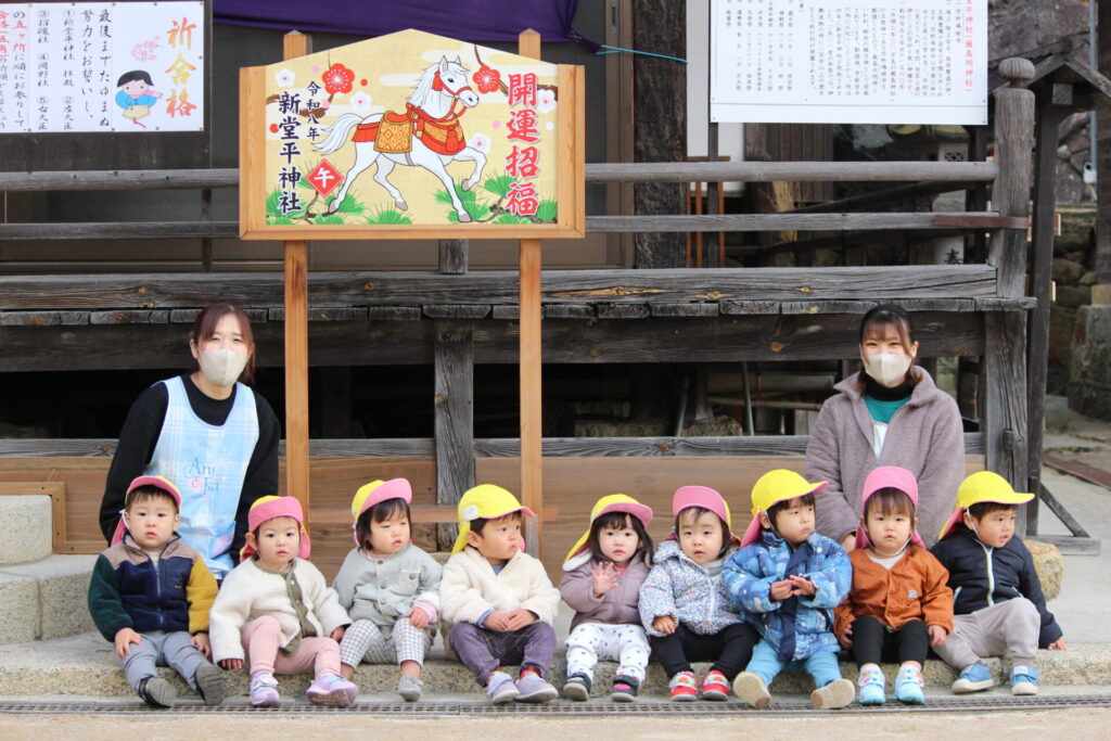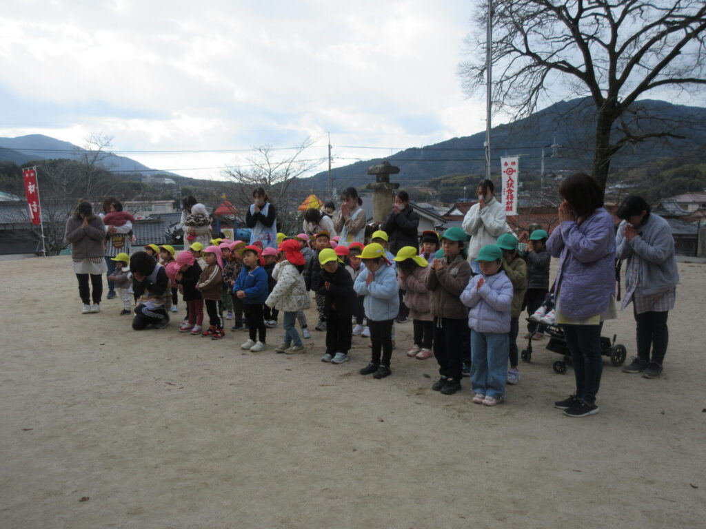 所長先生が代表でお賽銭をしたあとは全員で二礼二拍手一礼をし、「今年も元気いっぱい過ごせますように」とみんなでお祈りしました。